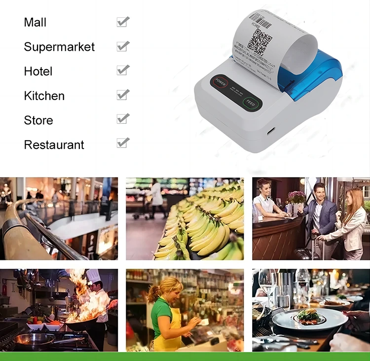 چاپگرهای بدون جوهر بی سیم بلوتوث حرارتی به طور فزاینده ای محبوب می شوند و به طور گسترده در صنایع مختلف مانند خرده فروشی، پذیرایی، تدارکات و مراقبت های بهداشتی استفاده می شوند. صنعت خرده فروشی می تواند از آن برای چاپ سریع رسید خرید استفاده کند. در صنعت کترینگ، می تواند سفارشات را فورا چاپ کند. در صنعت لجستیک، می تواند برچسب های تحویل سریع را چاپ کند. در صنعت پزشکی می تواند سوابق پزشکی و نسخه ها را چاپ کند. این سناریوهای کاربردی همگی کارایی و کاربردی بودن پرینترهای بلوتوث حرارتی را نشان می دهند.